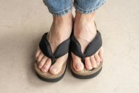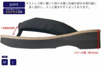 足のラインが美しく見えるレディースタイプの新しいスタイルの雪駄は、履いた時の安定感に優れており、新しい「和モダン」の雰囲気をお楽しみいただけます。底は軽量のEVAを使用し、クッション性・弾力性に優れています。