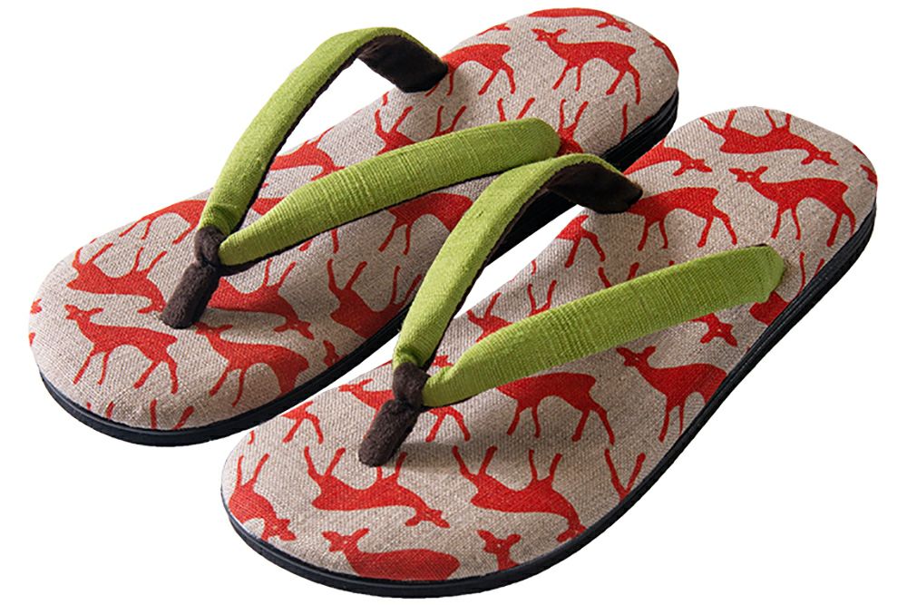 優雅にお散歩する奈良の鹿をデザインした麻生地を使用した雪駄です。