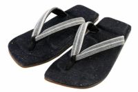 天板に岡山デニム・阿波しじら織の花緒など、日本の伝統素材を贅沢に使用し、暑い時期でも足あたりがよく、通気性も快適な上、配色も涼しげにまとめた一足に仕上げております。底材には合成ラバー材を使用しており、軽量な仕様と、粋な普段履きとしてお勧めの一足に仕上がりました。