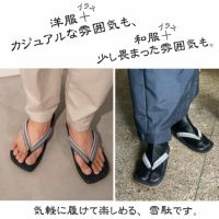 大和工房完全オリジナルデザインの足指に沿ったサンダルライクの形状で、親しみやすいスタイルの新しい雪駄です。