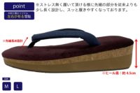 底面のかかと部分にカットを入れることにより、歩いた際に泥が跳ね返るのを抑え、足元や着物を汚しにくい様に設計しました。