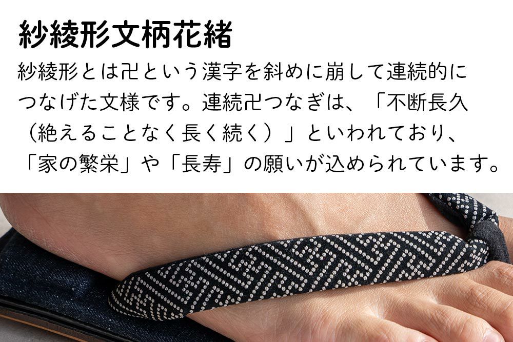 天板にデニム生地を使用した、オリジナルデザインの雪駄 雪駄 -Re:休- 国産デニム 紗綾形文 【メンズ】|H1082