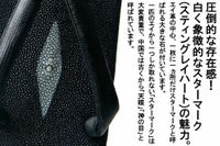 ※天板に使用しております「エイ革」の特徴である、白い斑点の「スティングレーハート」と呼ばれる部分につきまして、左右の位置にずれが生じている場合がございますが、天然素材を使用しておりますため、不良とはみなしておりません。予めご了承頂けますようお願い致します。