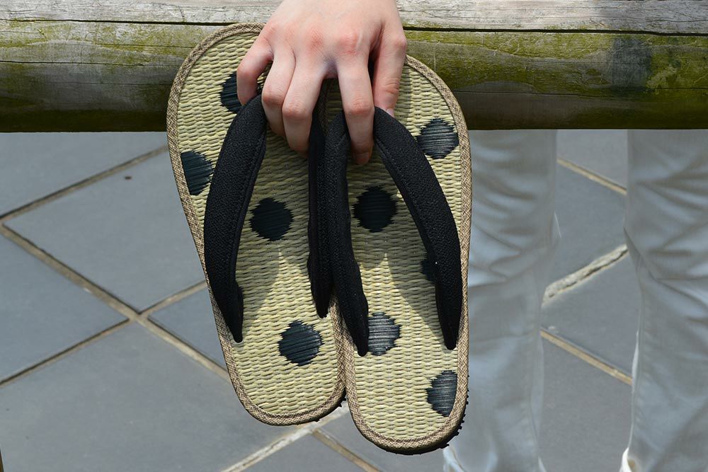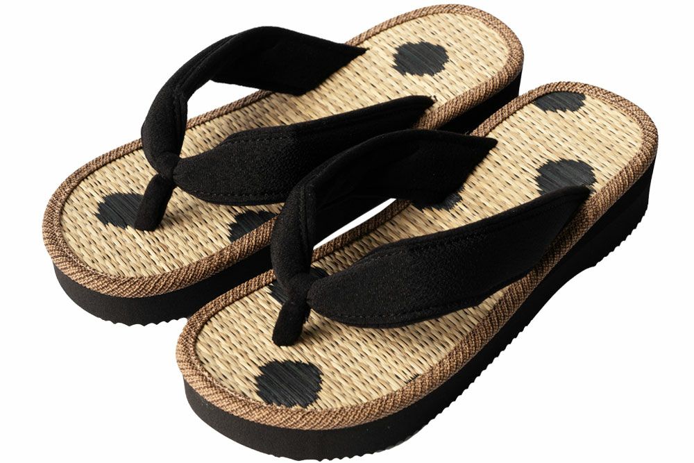 国産い草と水玉模様が可愛い雪駄 雪駄 国産い草畳 水玉 【レディース】|R459|黒