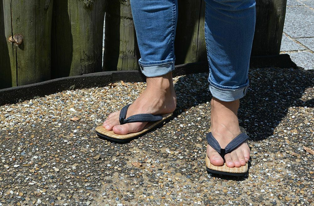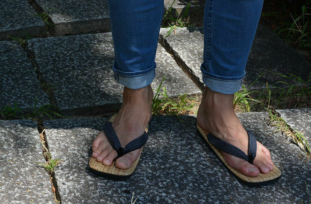 国産デニムの最高峰岡山デニム生地を天板に使用した、スタイリッシュな雪駄 雪駄 -Re:休- 岡山デニム 阿波しじら織・縦縞 【メンズ】|H1081