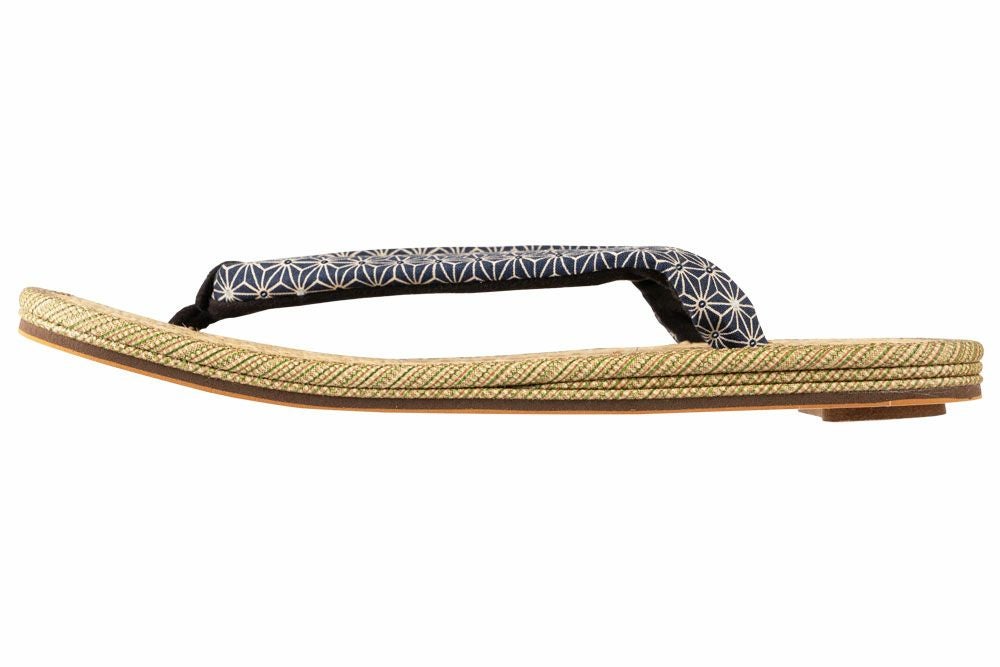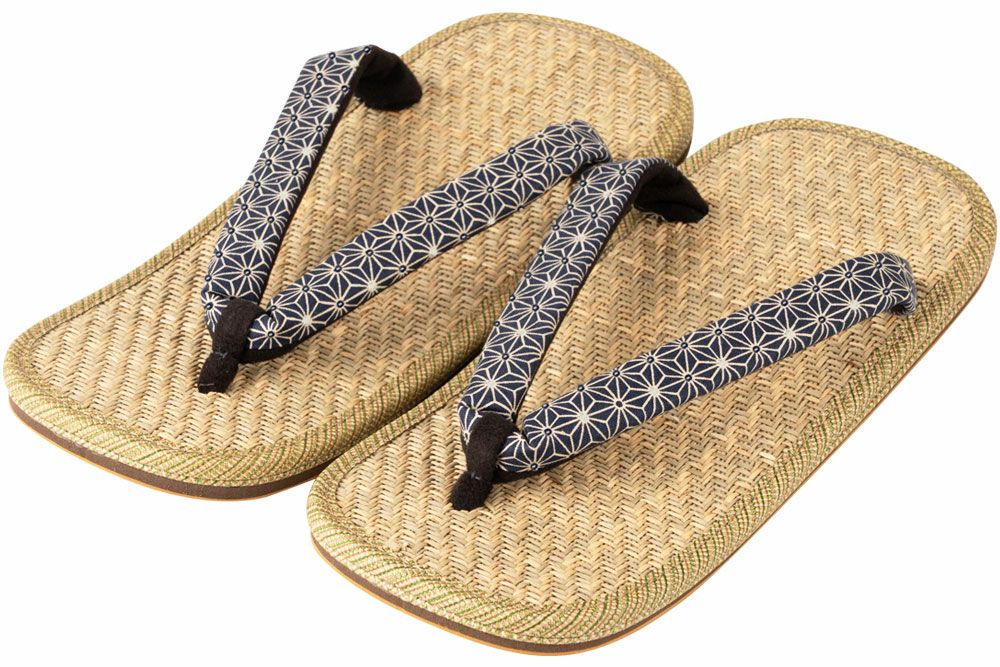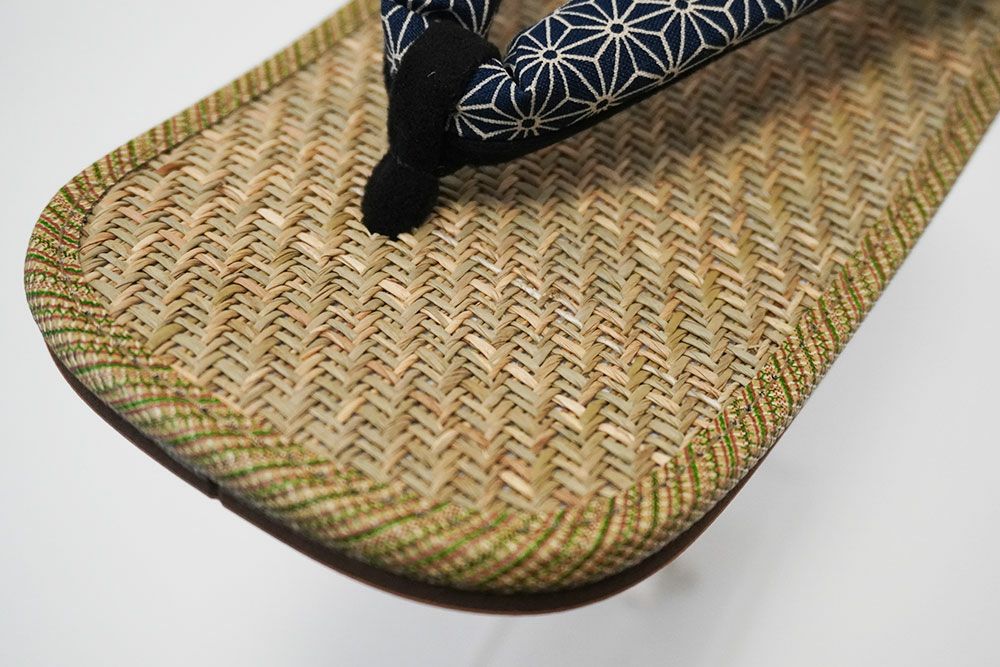 マライ草の天板に、青海波柄の花緒が粋な雪駄 雪駄 マライ草 パナマ織天板 青海波花緒 【メンズ】|H826