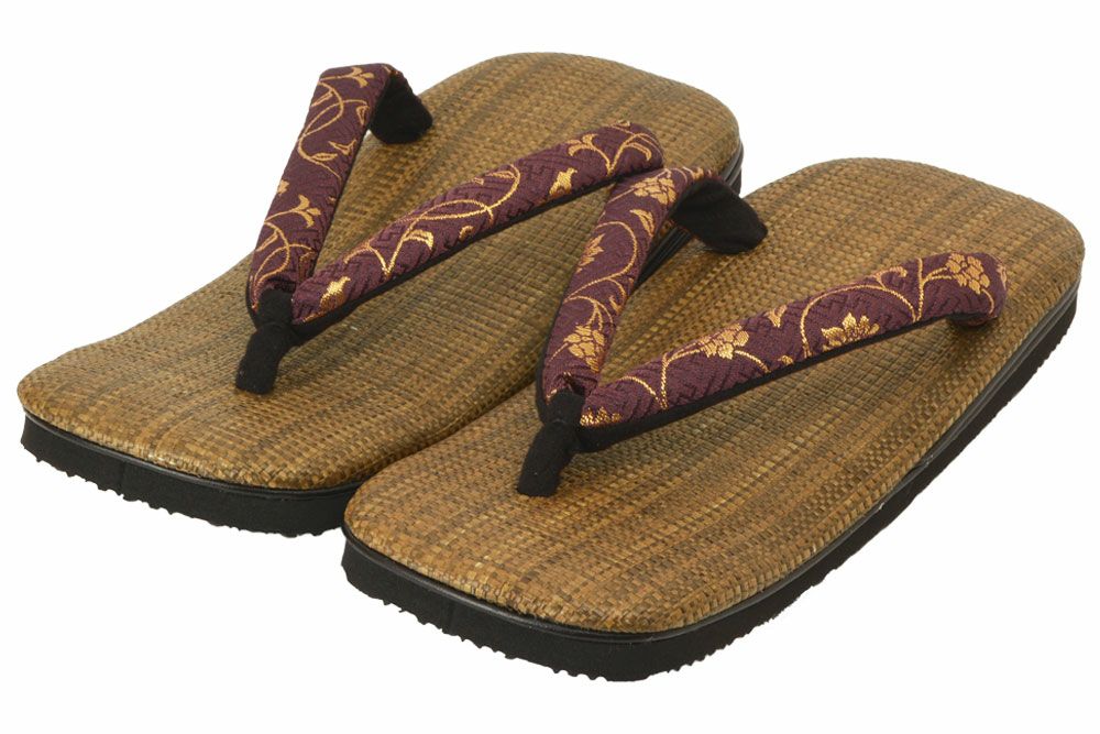 金襴刺繍が上品な正倉院文様花緒の雪駄 雪駄 パナマメッシュ 金襴刺繍 【メンズ】|R2023|紫